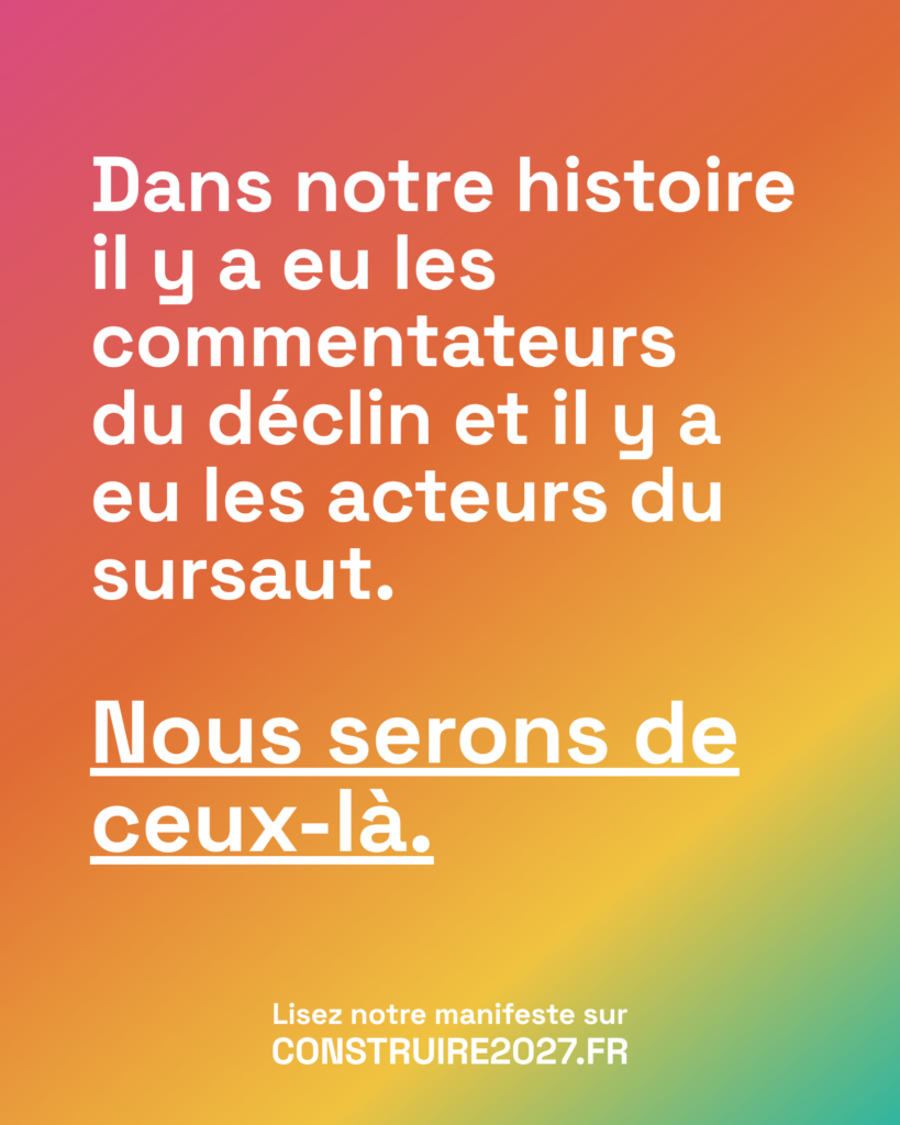 Pas nous. Nous ne nous résignons pas à la victoire du Rassemblement National en 2027. Nous ne jouons pas le coup d’après, nous voulons combattre maintenant, nous voulons convaincre maintenant, nous voulons gagner maintenant. L’immense majorité de nos concitoyens n’a pas le luxe d’attendre. Ses conditions de vie, de travail et de rémunération dépendent de notre mobilisation maintenant.